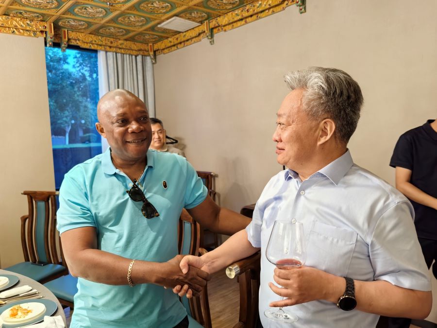 7月3日,中非经济贸易工作委员会主任黄兆锦受邀同塞拉利昂代表团共进晚宴。S&H投资公司首席执行官萨赫尔·萨基·贡多、法律援助兼首席执行官秘书玛格特·安吉拉·卢西亚娜·戴维斯、翻译兼伙伴关系业务协调员阿尔法·阿布巴卡尔·卡努、科诺区主席塞法·莫尔瓦、区长艾米·塔托尔·卡隆、赴华团队领队帕特里夏邦杜卡巴西等外宾出席晚宴。